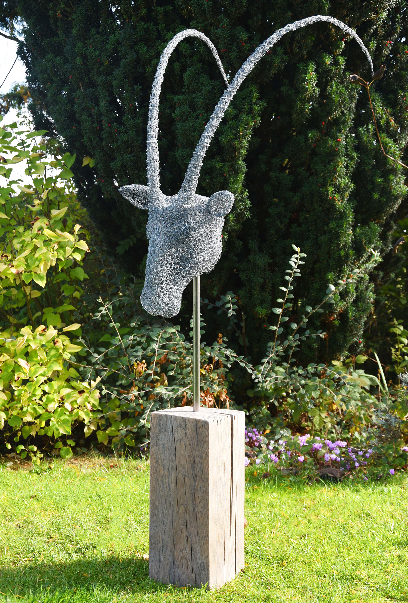 I did my research looking for a recognisable and dramatic head, the antelope family are always a good place to start and didn’t disappoint. I discovered the Scimitar Horned Oryx, now extinct in the wild, with its elegant long arching horns and decided this would be my next twist.