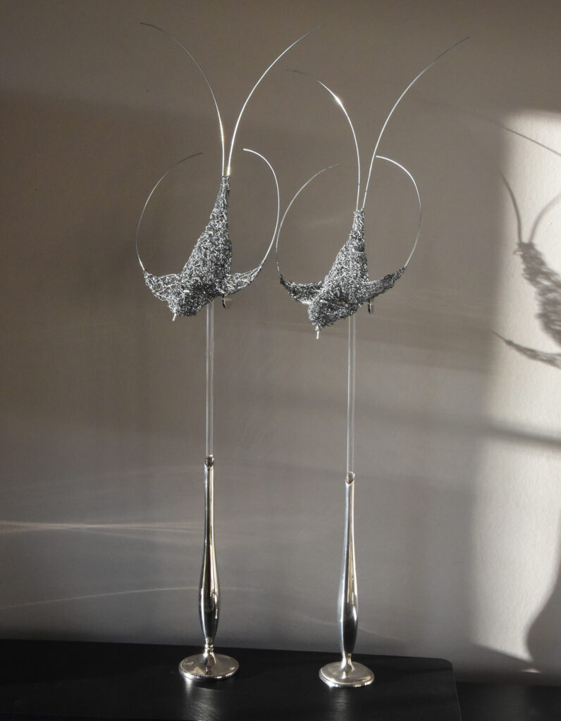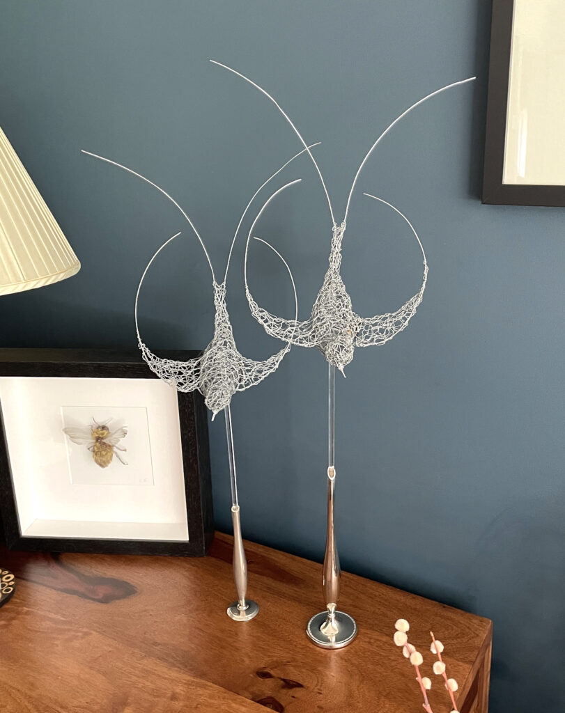 Later in the same year, having seen and liked my work, a couple of friend’s asked if I would be willing to make a “Twist” for them. Specifically they both asked if they could commission a swallow each. I headed for the studio and “Twisted” a pair of birds to add to my series of little sky dancers.